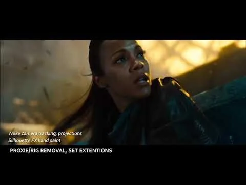 Star Trek (Into Darkness): (Pixomondo) Camera tracked and projected clean BG elements, set extensions and removed various set rigs and crew. Matched environments and lighting effects.